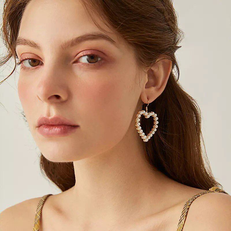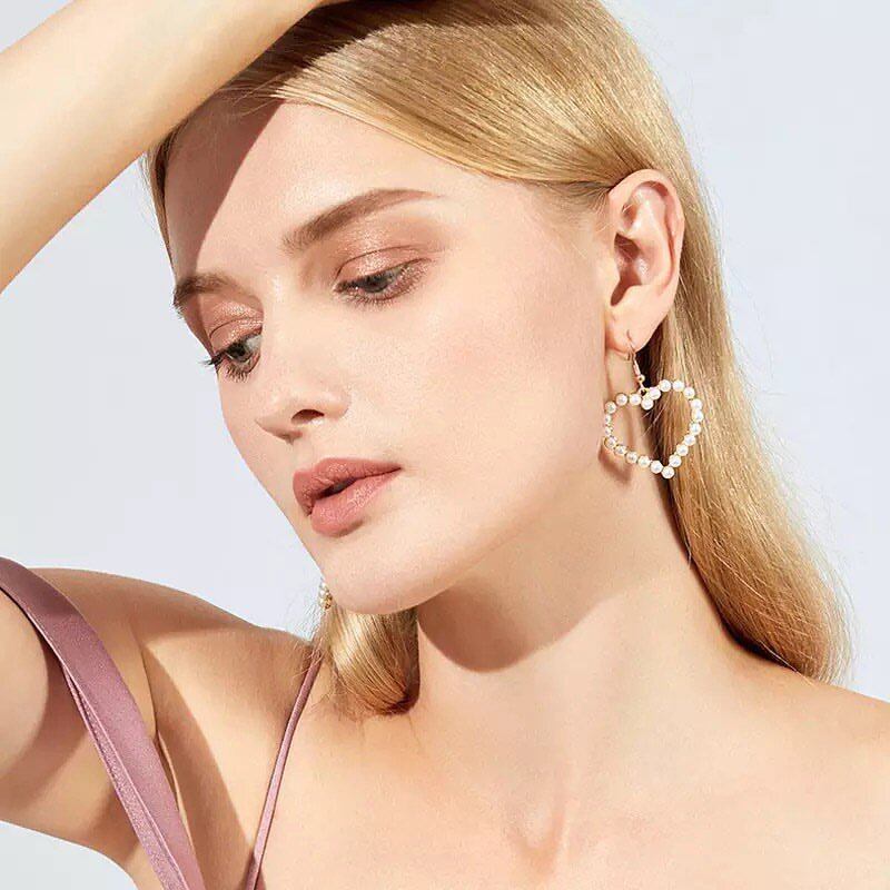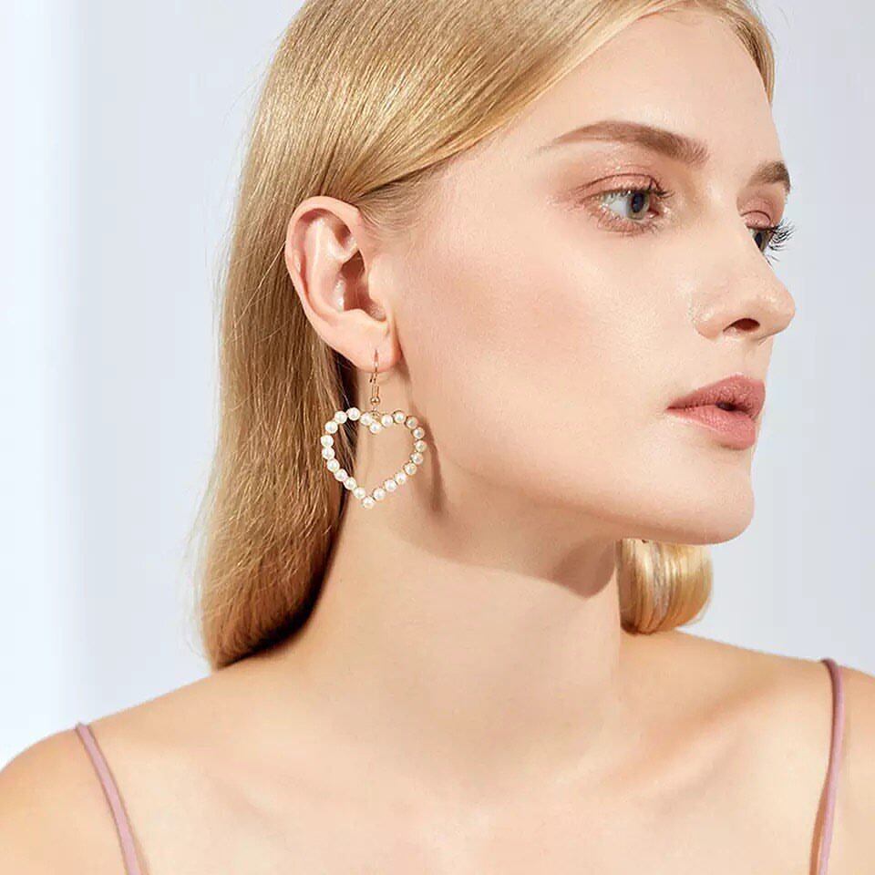 ハートのピアスはカジュアルなデニムにも